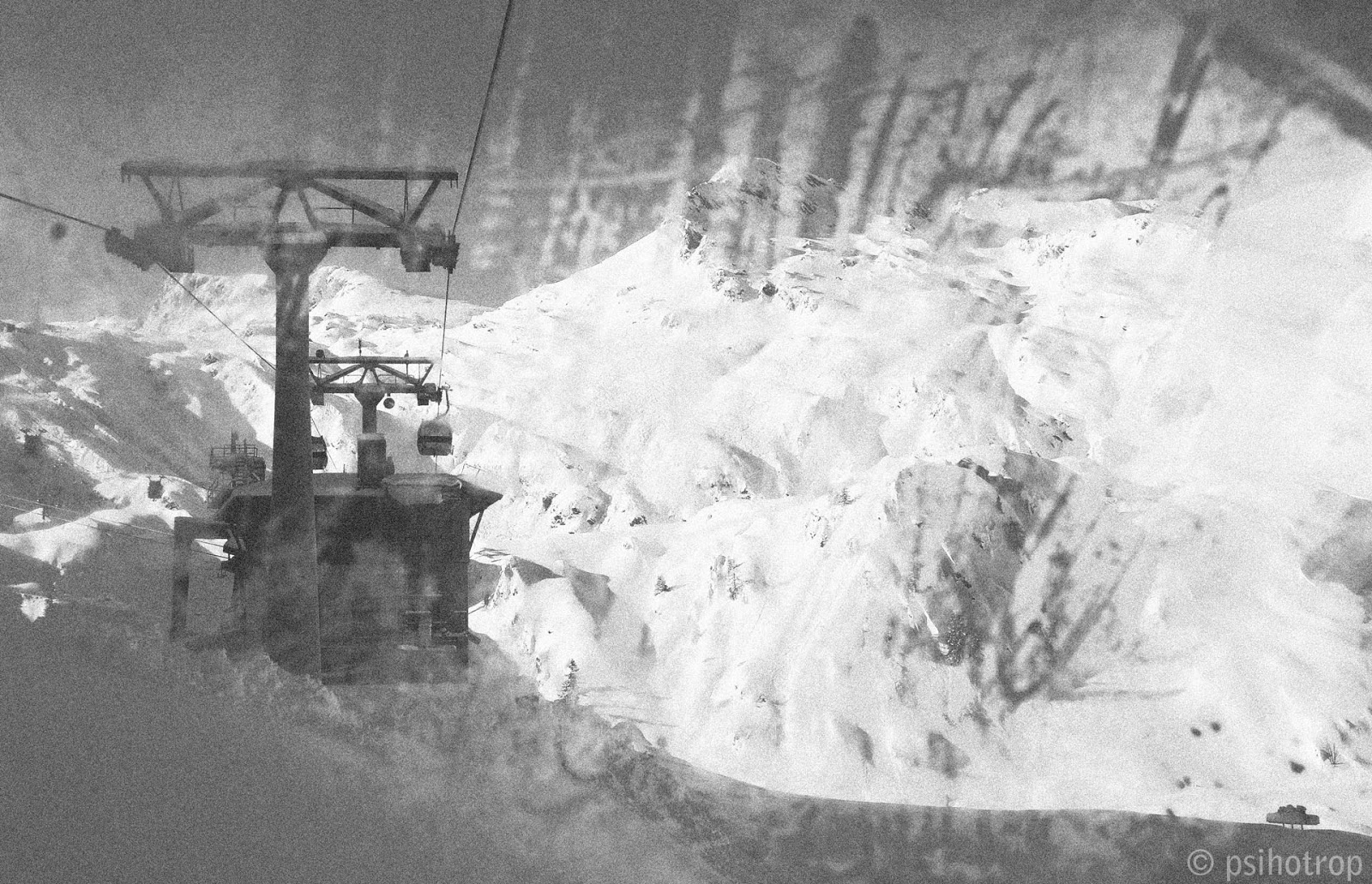 Radu zice să ne încălzim cu un ceai. Am tras multe cadre pe pârtie. Mulți schiori, snowboard-eri. N-au jenă, nu se simt ciudat că sunt fotografiați, nu te ocolesc și nu se strâmbă, nu-s ca noi, ba dimpotrivă, mulți zâmbesc. Barmanița zice că mai avem de luat o telecabină și ajungem în sfârșit la Panoramă. Până acum ce dracu a fost? Nu tot o panoramă? Ce pot să văd mai mult de-atât?